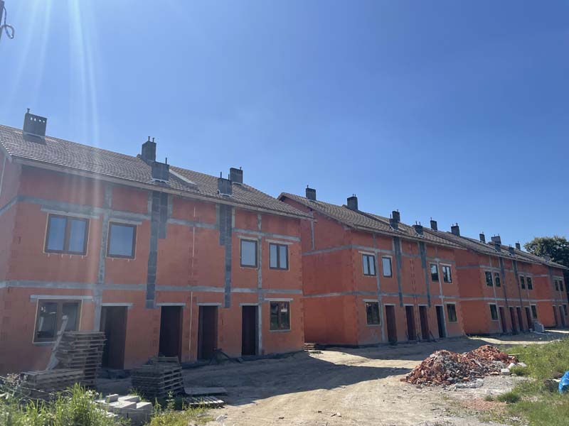 - Parkingi oraz dojścia do budynków wykonane z kostki brukowej lub ekokratki